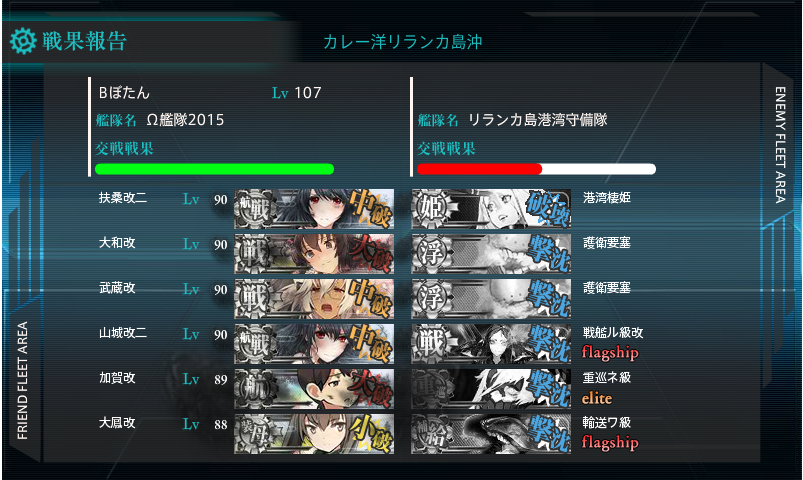 んでなんとか倒せたんですが、思ったより手間取って10回以上のアタックになってしまい、大和型が2隻もいるもんだから気づいたら燃料が20000も減ってました(白目)資源に余裕のない時に行くところじゃないですね。今のところ、ここがらみの任務もありませんし。