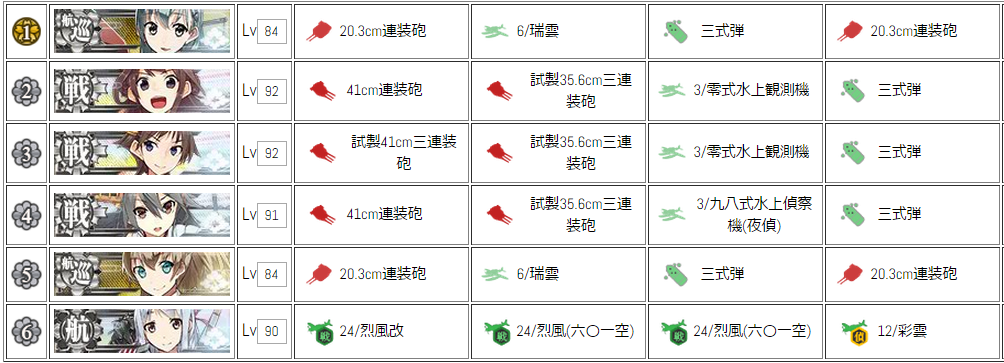 重巡洋艦でなく航空巡洋艦なのは、Bマスが潜水艦隊なので、瑞雲を装備することで敗北を防ぐため。